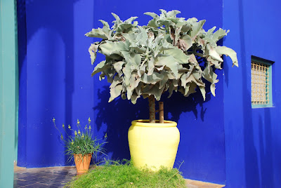 This effect has been enhanced by covering the ground in a thick layer of terracotta/pink gravel, again to highlight the colour and form of each plant, and all suckered progeny are religiously removed to maintain the clean lines of the parent plant. Maintaining such a strict and rigid regime is not easy and requires constant maintenance form the gardening team. In such a comparatively small garden you may well be surprised to learn that Majorelle runs with a full time team of 12 gardeners - Sissinghurst runs on about 4 and is twice as big!