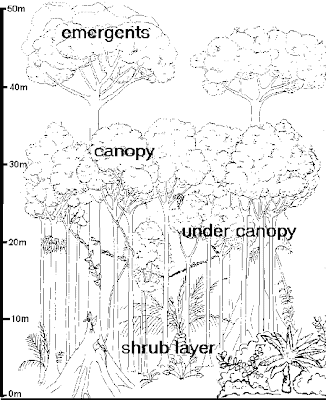A tropical rainforest is typically divided into four main layers, each with different plants and animals adapted for life in that particular area. These layers are as follows: